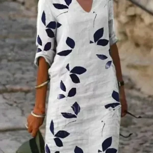 Robe en lin élégante avec col en V – Elara