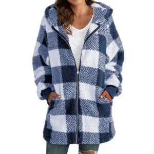Isabelle – Manteau à carreaux avec capuche pour un look décontracté