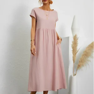 Avianna- Robe à manches courtes à double épaisseur et encolure ronde