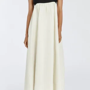 Robe longue à bretelles lâches en patchwork noir et blanc