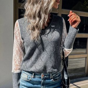 LinekkesShirt I Pull à col en V Pour Femmes