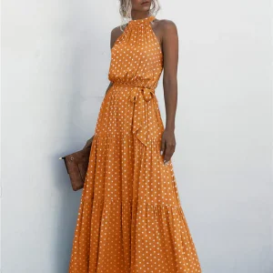 Evonne – Robe longue avec ceinture à nouer et imprimé à pois coloré