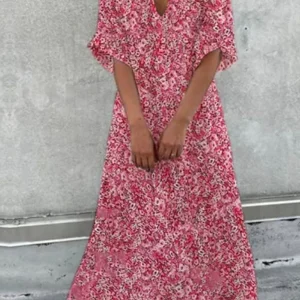 Pam – Robe en coton à demi-manches et col en V
