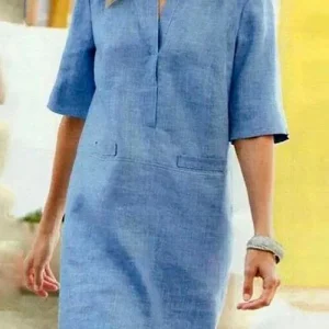 Ronsey – Robe à manches courtes en coton et lin pour femme