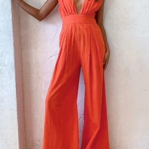 Combinaison dos nu et bretelles fixes | Combinaison d’été à jambes larges
