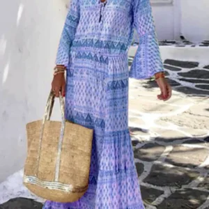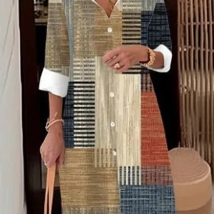 Angelyn – Casual Print Patchwork V Neck Cake Dress