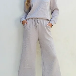 Lila – Ensemble texturé à manches longues et pantalon à cordon pour femme