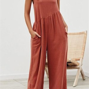 Casual – Combinaisons amples à col en V de couleur unie (6 coloris)