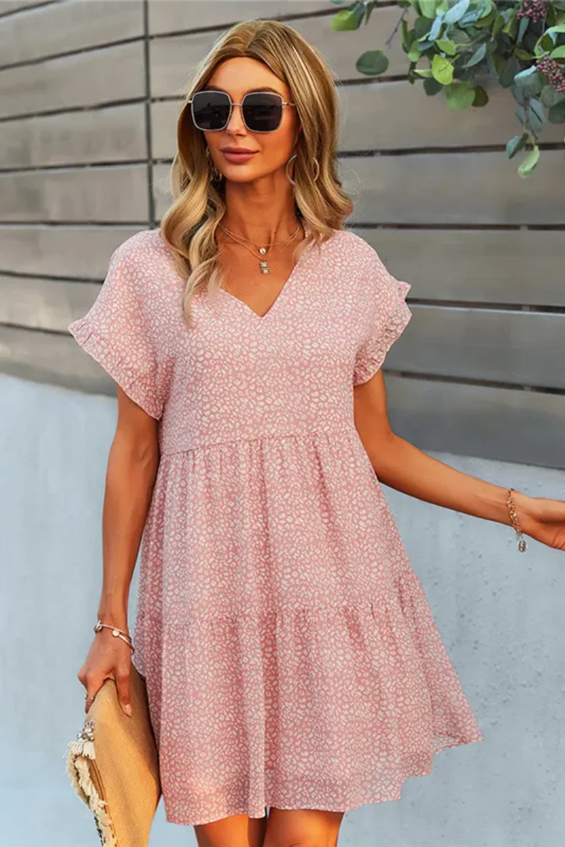 Confectionnée en chiffon doux, naturel et délicat, cette robe courte est l’incarnation parfaite de la fraîcheur estivale. Sa coupe ample et fluide épouse le corps en douceur, offrant un confort absolu même lors des journées les plus chaudes. Les volants ajoutent une touche aérienne qui suit élégamment chacun de vos mouvements.