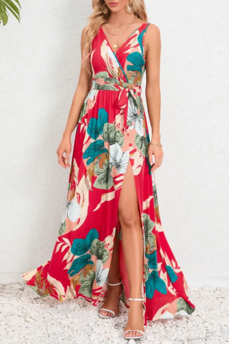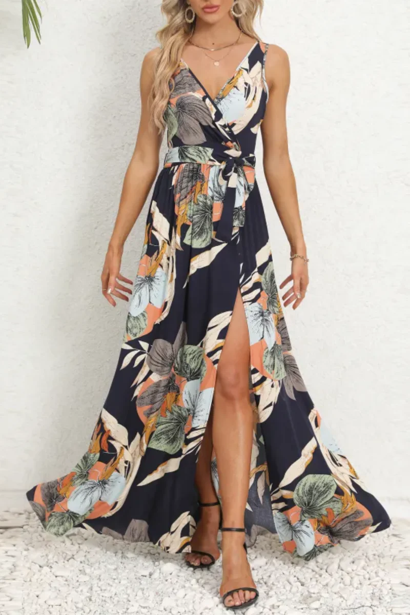 Confectionnée en matériaux doux, naturels et délicats, cette robe longue sublime chaque mouvement avec grâce. Son col en V flatteur et son imprimé fleuri délicat capturent l’essence de l’été, tandis que sa coupe sans manches vous garde au frais sous le soleil. Idéale pour une allure raffinée et légère lors des journées ensoleillées.