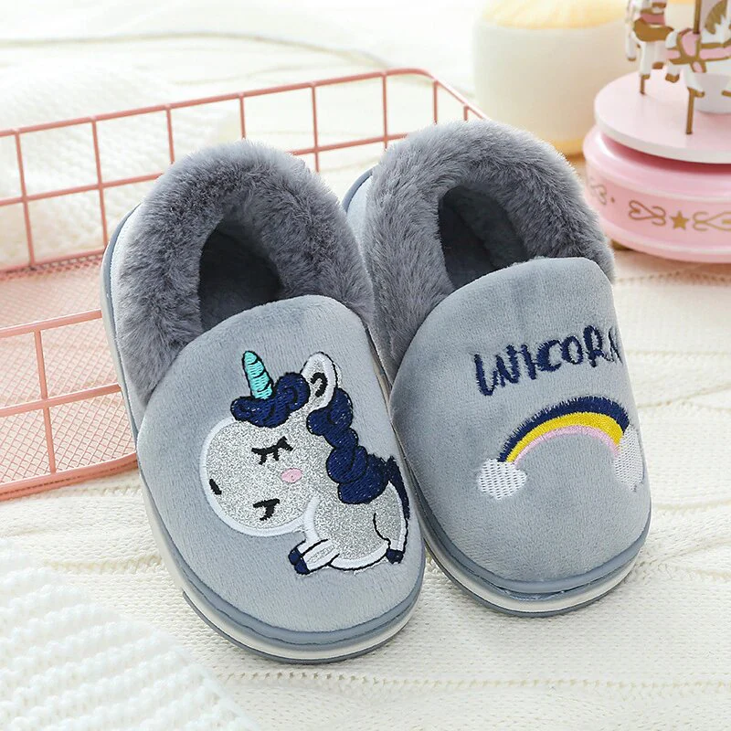 - Paire de chaussons enfant avec un motif de licorne brodé.