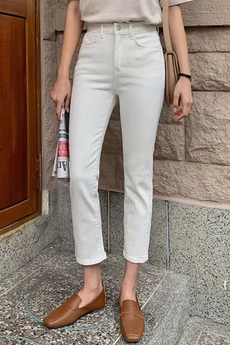 Qu’il soit associé à un chemisier ajusté ou à un tee-shirt décontracté, ce jean s’adapte sans effort à votre humeur et à l’instant présent. Le blanc éclatant en fait un basique intemporel pour le printemps et au-delà, tandis que la coupe à longueur de cheville ajoute une finition nette, facile à habiller ou à démonter. Un essentiel de la garde-robe avec un attrait quotidien élevé.