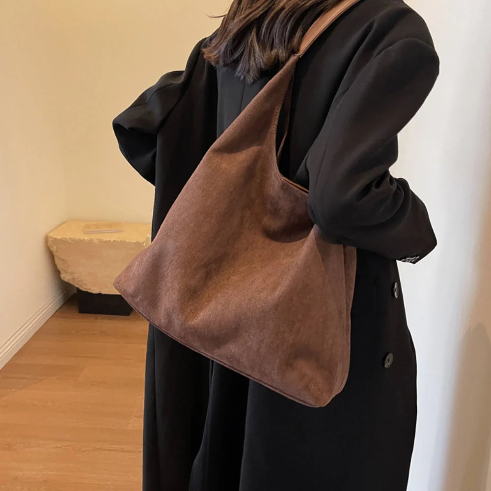 Léa™ est un sac qui allie simplicité et fonctionnalité pour vous accompagner au quotidien. Conçu en daim doux, il combine style et praticité, que ce soit pour le travail, les études ou vos sorties en ville. Ce modèle spacieux permet de transporter facilement tous vos essentiels, avec en plus une pochette intégrée pour garder vos petits objets bien rangés.