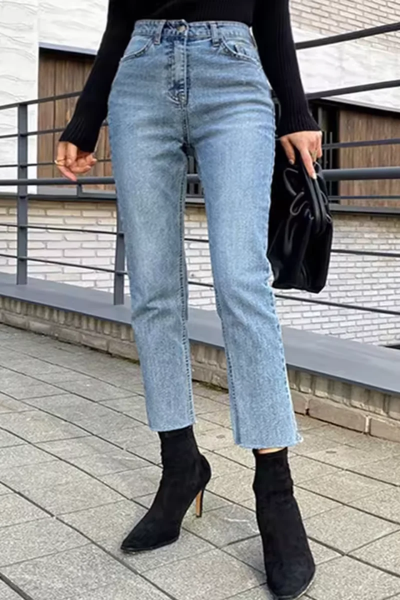 Rehaussez votre look quotidien avec ce jean taille haute magnifiquement ajusté. Confectionné dans des matières douces, naturelles et délicates, il offre une coupe ajustée aux hanches et une coupe droite classique. Sa longueur cheville apporte une touche féminine et épurée, tandis que l’effet délavé lui confère un look parfaitement porté, de jour comme de nuit.