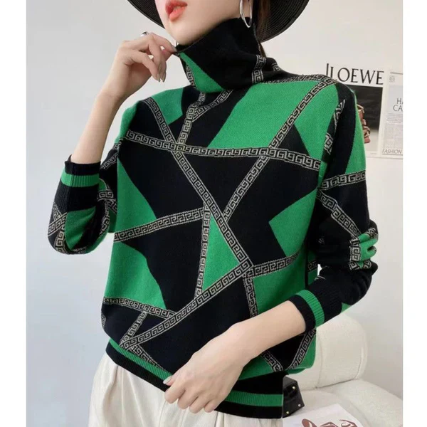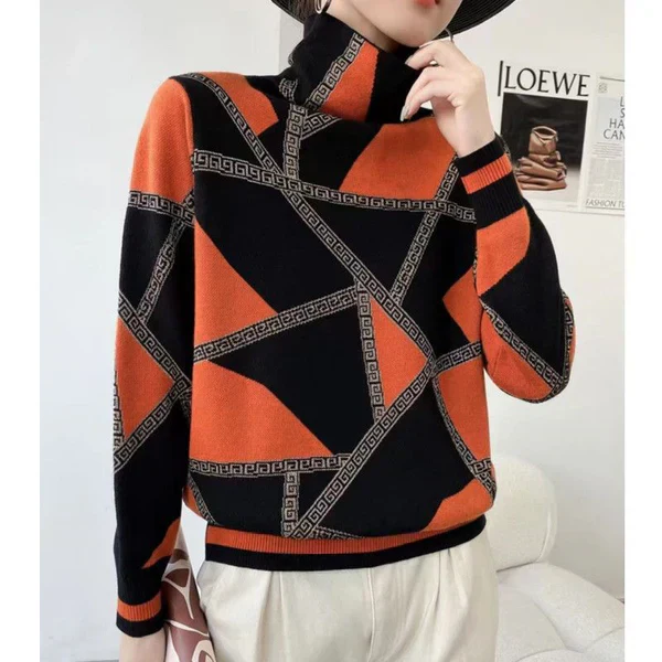 Soyez le premier à laisser votre avis sur “Pauline laurent | turtle-neck élégant pull imprimé”