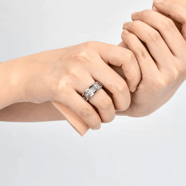 Cette bague anti-stress est faite de cuivre de haute qualité, 3 couches de placage en platine et de zircone cubique AAA+, hypoallergénique, solide et flexible, la zircone cubique est sertie dans une lunette et ne se détache pas facilement.