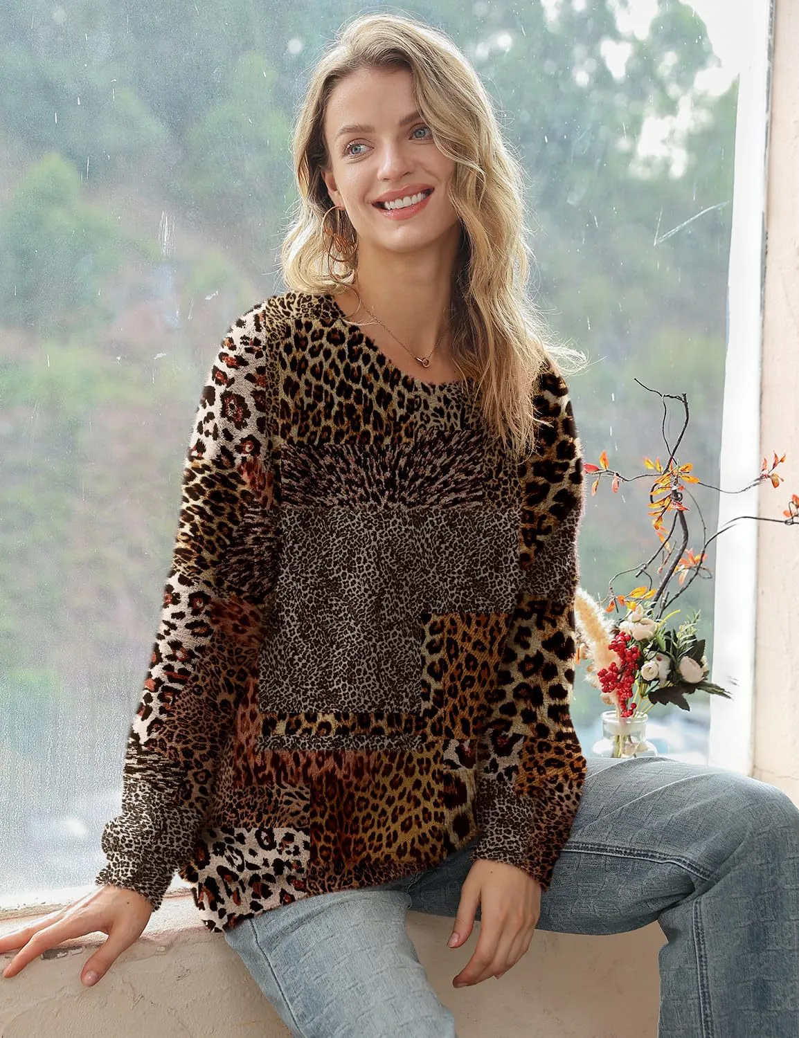 Teva – Pull à Motif Animal à Manches Longues et Col Rond