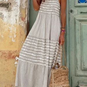 Brynn – Robe longue évasée avec col licou et rayures d’été