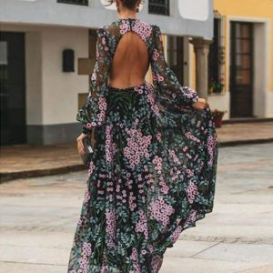 Belinda – Robe longue florale dos nu de style vintage