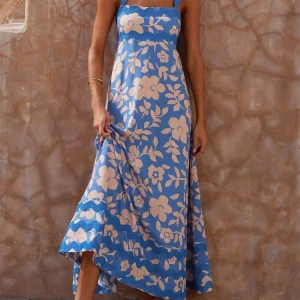 Lux – Robe longue sans bretelles à encolure carrée imprimée