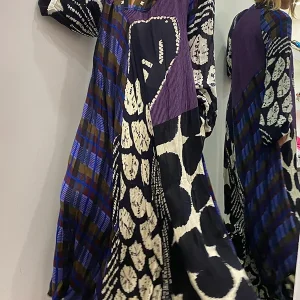 Rhiane – Robe longue créative à manches longues, imprimé colorblock et poches
