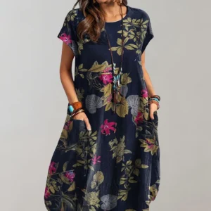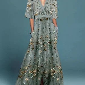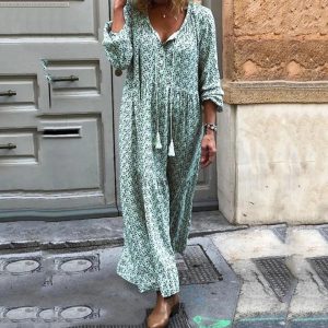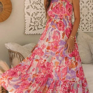 Robe longue imprimée avec bretelles spaghetti et col en V