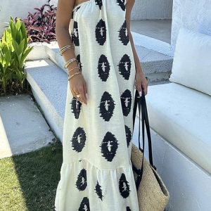 Robe longue imprimée blanche avec bretelles sur une épaule
