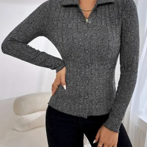 Venice – Cardigan Confortable et Stylé Gris Foncé pour l’Hiver pour Femmes